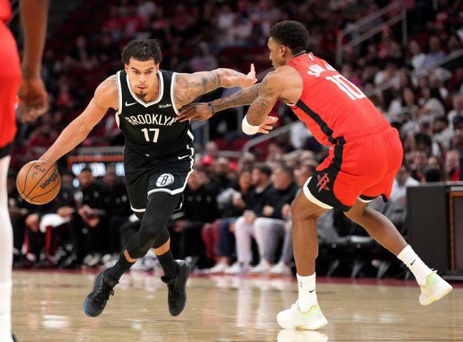 火箭前兩場連續(xù)惜敗雷霆與活塞遭遇新賽季兩連敗,籃網(wǎng)前三場連續(xù)輸給黃蜂、騎士與馬刺遭遇3連敗。本場火箭缺少范弗利特與芬尼-史密斯,籃網(wǎng)缺少鮑威爾、海史密斯等。首節(jié)開局火箭2-7落后,火箭連得5分追平比分,籃網(wǎng)一波6-2攻勢再度領(lǐng)先?;鸺齼?nèi)外開花打出7-0攻勢反超比分,曼恩三分追平,火箭一波11-3攻勢再度領(lǐng)先,籃網(wǎng)連得6分迫近比分?;鸺帱c(diǎn)開花打出15-0攻勢,尤其是謝潑德與伊森最后階段接連外線三分命中,首節(jié)結(jié)束火箭42-25領(lǐng)先籃網(wǎng)17分。